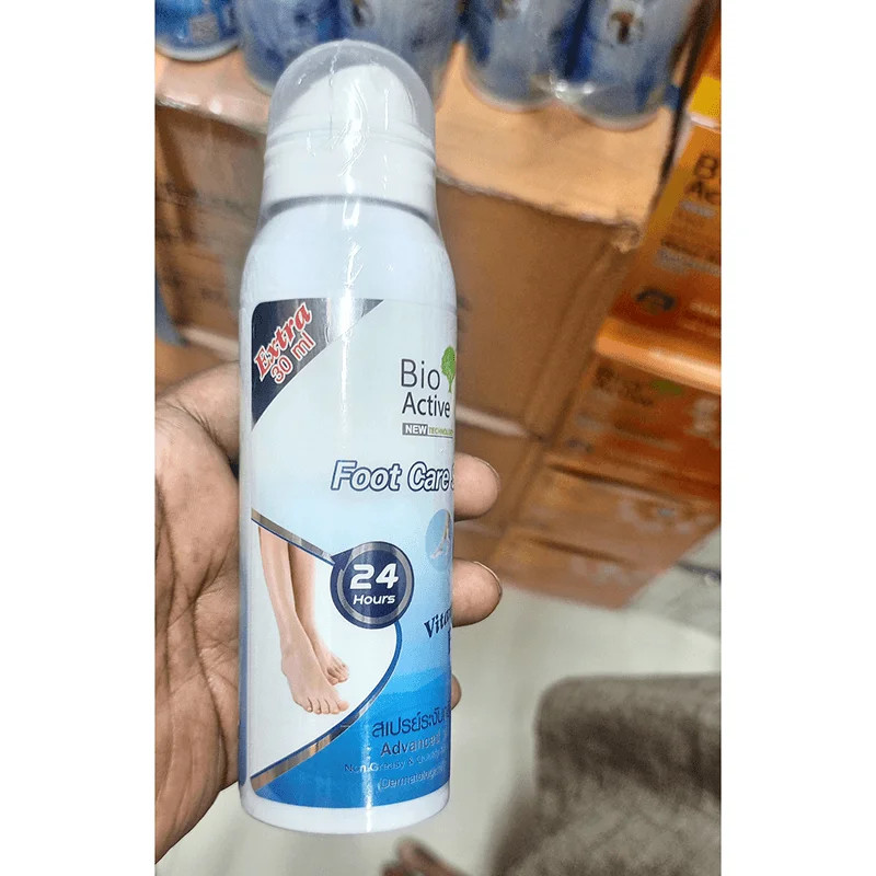 The Bio Active Foot Care Spray is a specialized foot hygiene solution designed to combat foot odor and fungal infections. Its unique formula combines natural extracts and active ingredients to provide effective care for your feet.