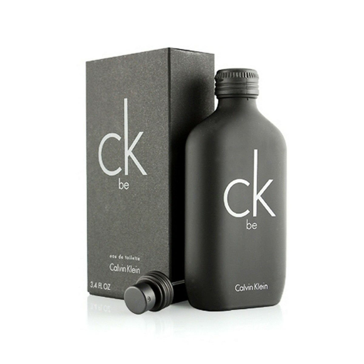 - Matte black/opaque bottle (or sleek finish) with the “CK Be” signature